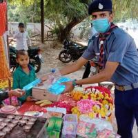 Under the Mission Shakti being run by Chief Minister Uttar Pradesh Honorable Shri Adityanath Yogi, the Banke Bihari Open Rover Crew Team of Uttar Pradesh Bharat Scout and Guide District Institution Mathura conducted an awareness program through banners and posters as well as meat to the needy people. And biscuits were distributed