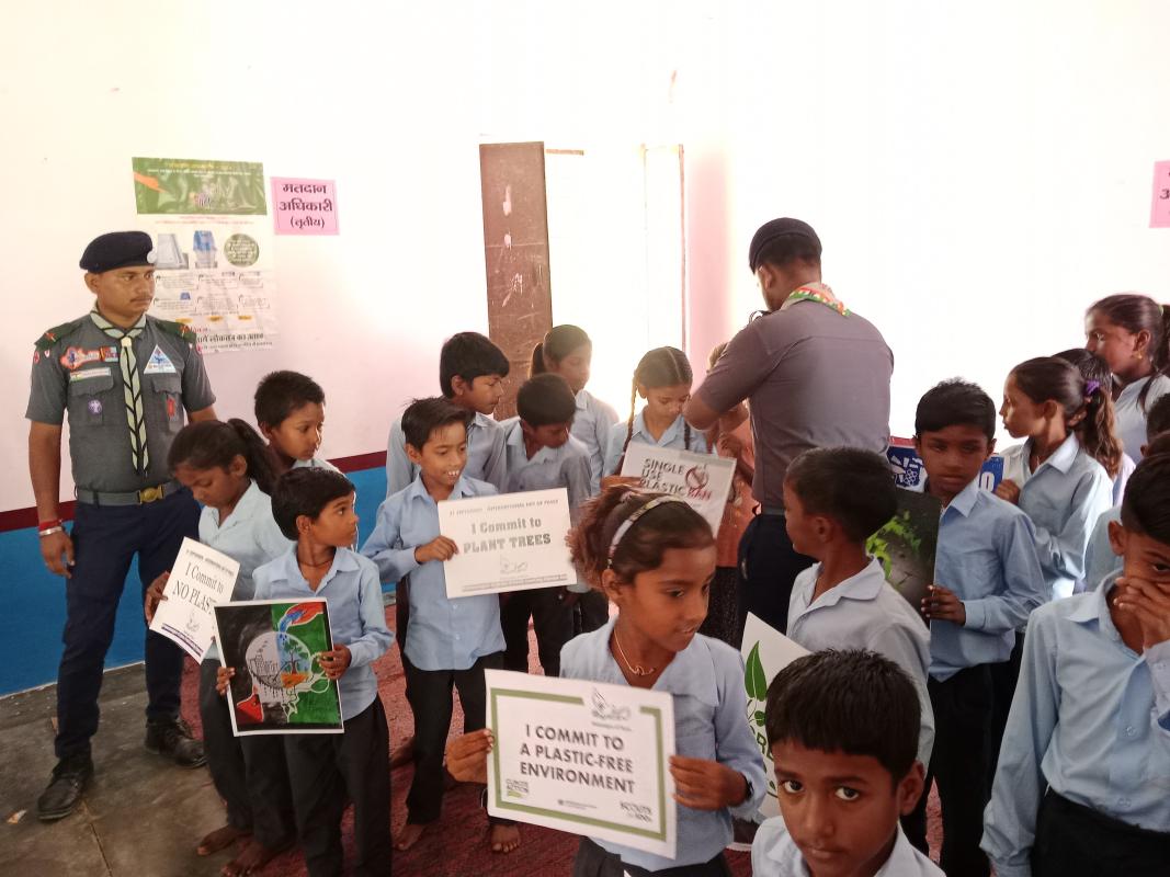 सबसे पहले मैंने विद्यालय के प्रधानाचार्य से परमिशन लिया उसके पश्चात बच्चों को एकत्रित कर उनको प्लास्टिक से होने वाली बीमारियों के बारे में बताया और यह बताया कि प्लास्टिक का कम से कम उपयोग कैसे करें और जो हार्ड प्लास्टिक होती है उसका दोबारा प्रयोग कैसे करें बच्चों को 3r के बारे में बताया।