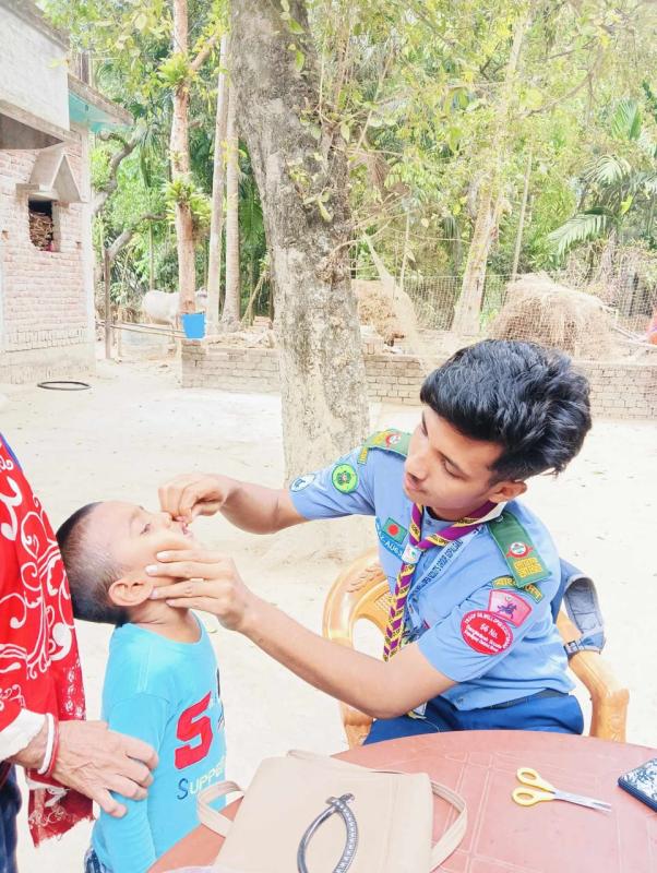 On March 15, 2025, from 9 am to 2 pm, we, 2 scouts and 8 rover scouts of the Troop Gilwell Open Scout Group, volunteered at the Nogor Matrisodon Community Clinic with full energy! We worked tirelessly, administering Red (12-59 months) and Blue (6-11 months) Vitamin A Plus capsules to children. The overwhelming response from local families, who lined up eagerly, fueled our enthusiasm. With teamwork and dedication, we ensured every child was served, making the day a joyful success!