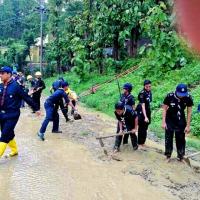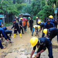 পাহাড় ধ্বসে রাস্তায় পড়ায় রাস্তাঘাট সচল করার অভিযান
