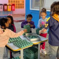 Estimular a consciência ambiental das crianças, mostrando como materiais recicláveis, como as caixas de ovos, podem ser reutilizados, evitando o descarte no lixo comum.