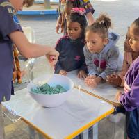 A divisão do trabalho em estações foi muito positiva. Cada grupo tinha funções específicas: uma criança cortava, outra amassava, e assim sucessivamente. Isso ajudou na organização e no engajamento de todos.