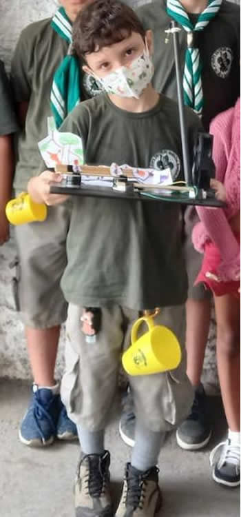 Fiz um projeto chamado Parque dos Ventos, que apresenta o uso da energia eólica para gerar energia elétrica e acender o led do poste para apresentar no grupo de escoteiros que faço parte - 31o. GE Marechal Rondon.