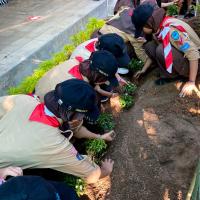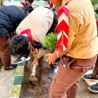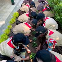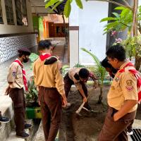 Kami berjumlah 18 orang Pramuka melaksanakan projek sosial ini dengan cara menanam bibit sederhana di lingkungan sekolah. Kami menanam bibit sederhana dengan inisiatif kami sendiri karena kami ingin sekali sekolah kami memiliki udara yang bersih sehingga kami dapat belajar dengan nyaman. Setelah penanaman tersebut kami membagi shift untuk penyiraman tanaman tersebut, di pagi dan sore hari setiap harinya.
