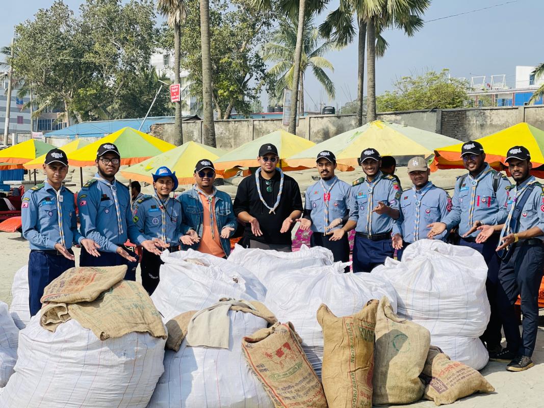 Kuakata, a beautiful venue in the south, was our group camp venue with a purpose beyond camping—beach clean-up and plastic pollution awareness. Rovers and Girl-in-Rovers united to remove plastic waste and educate others on recycling. This initiative wasn't just about cleaning but creating awareness and promoting shared responsibility. Together, we took a step toward a cleaner, greener future.