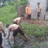 Pramuka smk 01 sungai kakap membersihkan masjid