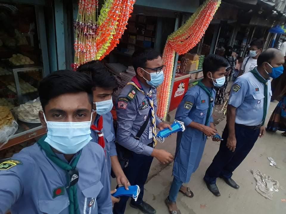 The project was implemented in different places of Karimganj upazila of Kishoreganj district. Funded by Upazila Scouts, around 250 ordinary maskless pedestrians, rickshaw pullers, auto drivers and shopkeepers have been distributed.