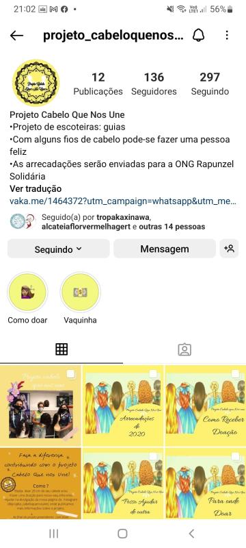 It was implemented in our scout group and instagram (https://instagram.com/projeto_cabeloquenosune?igshid=YmMyMTA2M2Y=), we ran a campaign to encourage and raise awareness about hair donation, during the project period we collect hair to deliver to the NGO Rapunzel Solidária.