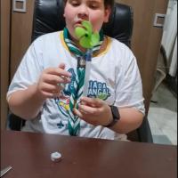 Usei um motor corrente continua que foi retirado de um computador quebrado. Achei um brinquedo velho que tinha balas dentro e usei a helice. Usei também tampinha de garrafa pet e fios de cobre que retirei de um carregador de celular que não funcionava mais. esse motor em geral funciona com energia de pilhas e baterias, porém fiz ele funcionar como um dínamo, que vai transformar a energia dinâmica ocasionada pelas pás da hélice em energia elétrica.