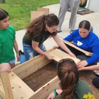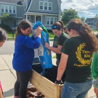 After many hours of planning, I purchased all the supplies and asked for volunteers. On the project work day, we assembled the raised garden bed, filled it with soil, plants, mulch, and plant labels. Then I delivered it to the school, along with a watering can, garden care sheet, a live butterfly kit, and some books for the schoolchildren about pollinators. The following week, I visited the school to meet with some students and share my project with them.