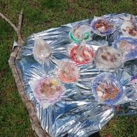 Desinfección solar del agua por medio de una botella de plástico puesta al sol Construcción de un horno solar para cocinar alimentos sencillos por medio del sol Arte solar por medio del sol y una lupa Medir el calor del agua en botellas de colores Eleboración de lentes solares para protegernos de los rayos UV Construcción de un Reloj solar