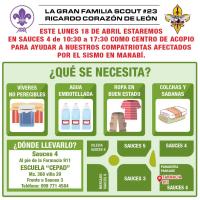 Por medio de panfletos y redes sociales como whastaspp y Facebook, así como comunicar puerta a puerta a los vecinos sobre la recolección de ayudas para los damnificados por parte del grupo Scout.