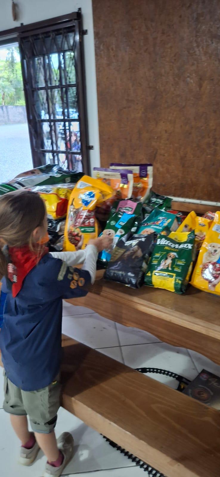 Primeiro, conversamos com a responsável da ONG para entender como poderíamos ajudar. Em seguida, produzimos um folder de divulgação para arrecadação de ração, que foi compartilhado com jovens e responsáveis. Depois, duas representantes da ONG Patudos da Rua foram até nossa sede, apresentaram o trabalho da instituição, falaram das dificuldades enfrentadas e levaram um cachorro resgatado para os jovens conhecerem.