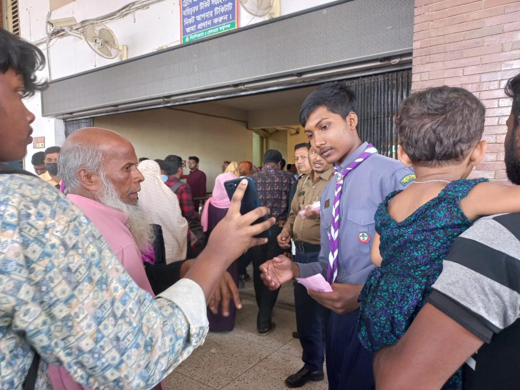 Rajshahi University is one of the most popular universities in Bangladesh. Every year, students from different parts of Bangladesh come to Rajshahi city to take admission test in Rajshahi University. On the 3 day of the exam, the pressure of many people increases in Rajshahi city. It is not possible for the railway employees to handle this huge passenger load alone, so we scouts provide passenger services for these 3 days.