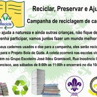 1) Divulguei a arrecadação de cadernos usados por meio de cartazes em locais estratégicos, nas redes sociais – através do WhatsApp e Instagram; a partir de conversas com familiares e amigos e na minha escola