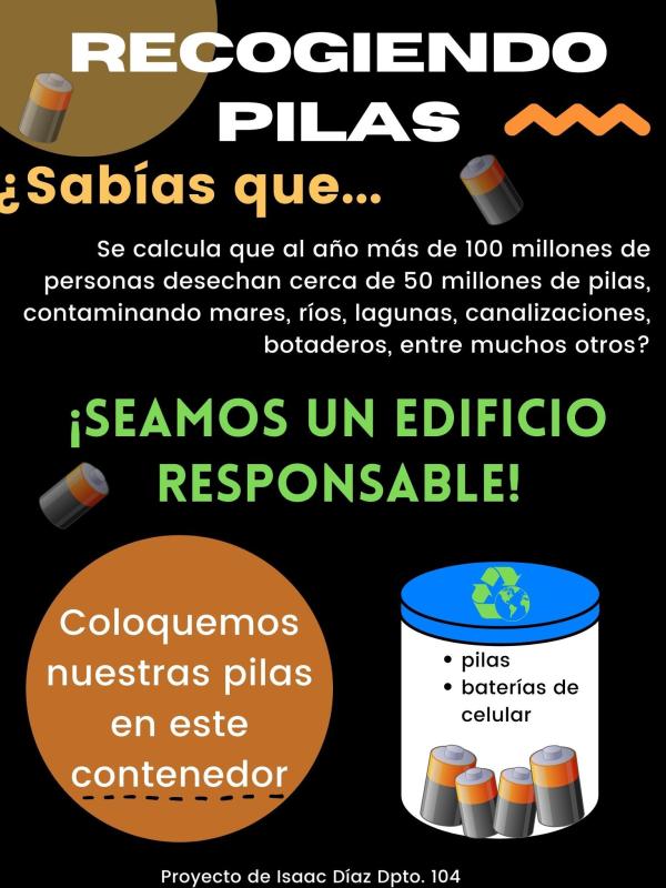 Inspiring the people on my neighborhood in order to take action on the responsible management of the disposable batteries once that they were used, creating awareness about the importance of the correct management of batteries and the enviromental impact of this actions