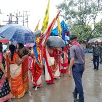 The members of Bharat Scouts and Guides, Northeast Frontier Railway, Tinsukia District Association rendered volunteer service during the religious rally organised in connection with the installation of the Idol of "Maa Sitla Devi" followed by "Pran Pratishtha" of "Shree Shree Sarbajanin Sitla Mandir, Tinsukia" on 13th and 14th July, 2023. A number of 24 members including Rovers, Rangers and Unit Leaders participated in the volunteer service.