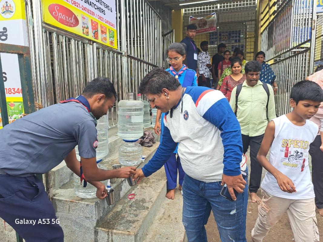 Myself Shashikumar nandappa Kudari from premier open group mysuru regarding the vardanti mahotsav of goddess Chamundeshwari in aashad month there is lot of people come to visit the Chamundeshwari temple for darshan and also to look heritage of mysuru from other places so our district association conduct service camp at Chamundeshwari temple because we render service in temple like maintaining crowd and distribute the water and food to the devotees