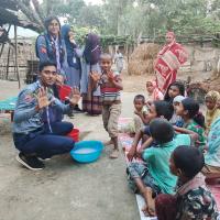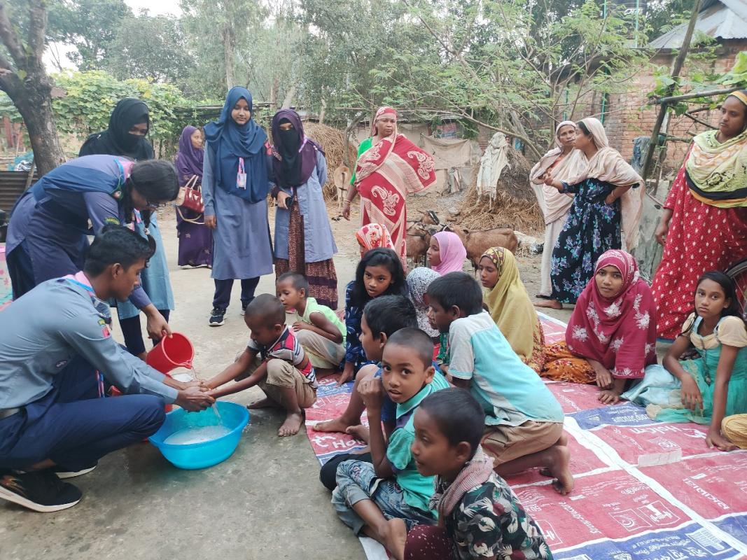 স্বাস্থ্য সুরক্ষা বিষয়ক আলোচনা করি।এবং হাত ধোঁয়ার সকল নিয়ম গুলো তাদের শেখাই। প্রথমে পরিষ্কার পানিতে হাত ভিজিয়ে নিতে হবে। তারপর পর্যাপ্ত পরিমাণ সাবান হাতে ঘষে নিতে হবে। তারপর অন্তত ২০ সেকেন্ড ধরে হাত সব পাশে ঘষে নিতে হবে। হাতে কোনো আংটি বা অন্যান্য গয়না থাকলে তার ওপর-নিচ ভালো করে ঘষে নিতে হবে। দুই হাত একে অপরের সঙ্গে ভালো করে ঘষতে হবে এবং এরপর পরিষ্কার বিশুদ্ধ পানিতে হাত ধুয়ে নিতে হবে। হাত ধোয়া শেষ হলে তা শুকনা পরিষ্কার কাপড় বা টিস্যু দিয়ে ভালো করে মুছে নিতে হবে।