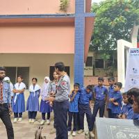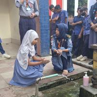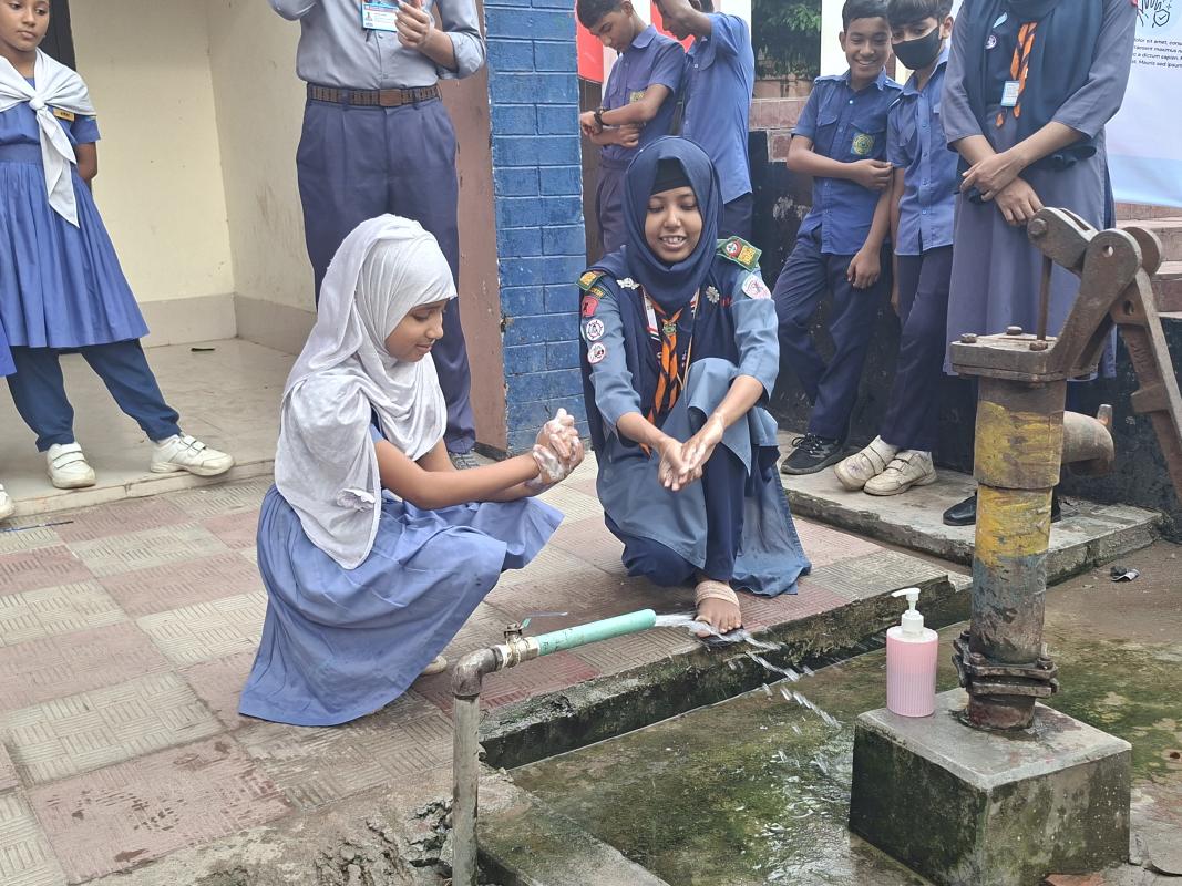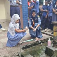 স্বাস্থ্য সচেতনতা বিষয়ক আলোচনা করি।এবং হাত ধোঁয়ার সকল নিয়ম গুলো তাদের  শেখাই।  প্রথমে পরিষ্কার পানিতে হাত ভিজিয়ে নিতে হবে। তারপর পর্যাপ্ত পরিমাণ সাবান হাতে ঘষে নিতে হবে। তারপর অন্তত ২০ সেকেন্ড ধরে হাত সব পাশে ঘষে নিতে হবে। হাতে কোনো আংটি বা অন্যান্য গয়না থাকলে তার ওপর-নিচ ভালো করে ঘষে নিতে হবে। দুই হাত একে অপরের সঙ্গে ভালো করে ঘষতে হবে এবং এরপর পরিষ্কার বিশুদ্ধ পানিতে হাত ধুয়ে নিতে হবে। হাত ধোয়া শেষ হলে তা শুকনা পরিষ্কার কাপড় বা টিস্যু দিয়ে ভালো করে মুছে নিতে হবে।