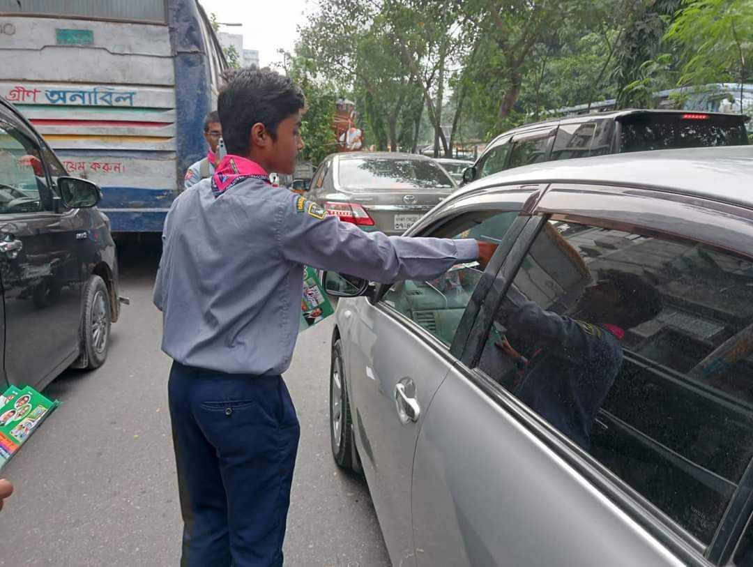 আমি সহ আমার দলের ১৮ জন রোভার এবং স্কাউট সদস্য ডাকার বাসাবো এলাকায় ট্রাফিক সিগন্যালে জনসচেতনতা মূলক লিফলেট বিতরণ করি শব্দ দূষন এর বিরুদ্ধে। আমরা অযথা গাড়ির হর্ন বাজানো, উচ্চ শব্দে মাইকিং ইত্যাদি করা থেকে নিরুৎসাহিত করি পথচারীদের।