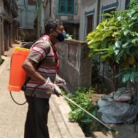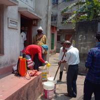 Sanitize the Group area with the spraying by the disinfector guided by the government of India every week. Today it is started at the morning 10:00 am to 12:30 pm by our local revers, the project is leaded by our Group Leader Scouts Sri Jiban Biswas, project executed and coordinated by our ASM Sri Subhasis Mudi . The project planned and guided by Sri Kanchan Das, RSL with the help and advised by Sri Hiron Galui, ARSL and other group Scouters, Total Member present 15 nos. Rovers are distributed with 5 groups as a buddy.Now the Sponsoring club members donors and the local people are relaying and supporting the group members whole heatedly. The local people are now requesting for different services from our group members.