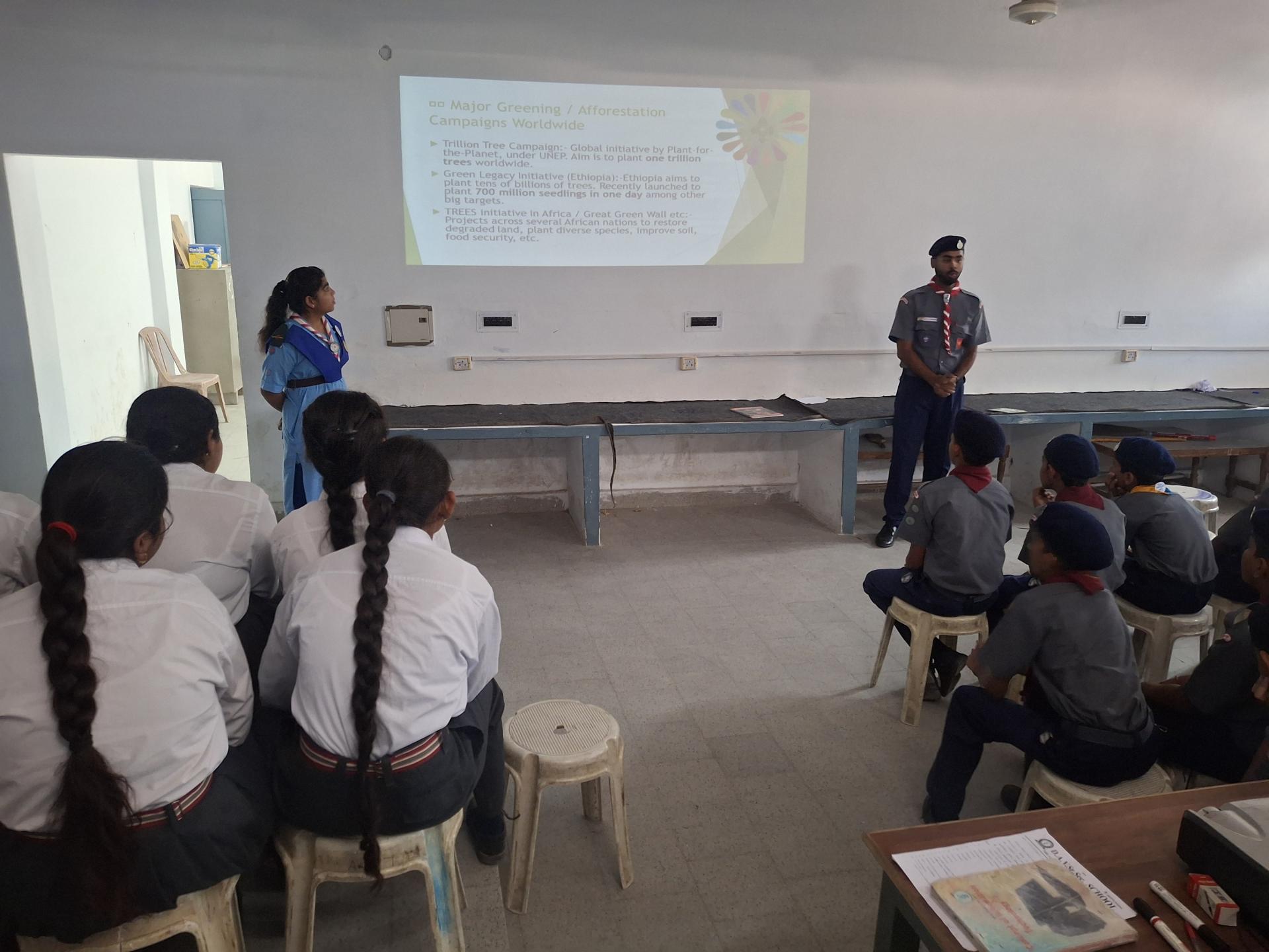 We take a seminar in a school about Climate Change and single use plastic and distributes cloth bags to the principle and children make paintings and posters regarding climate action.