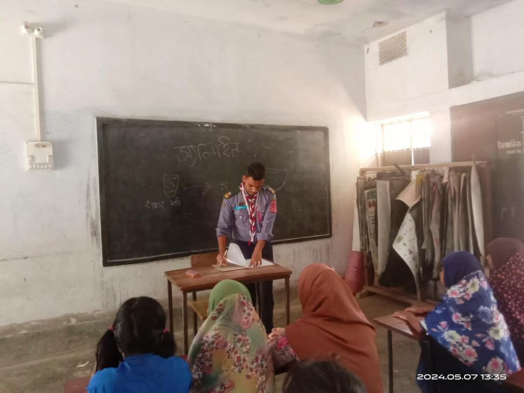 আমি একটি প্রাইমারি স্কুলের শিক্ষার্থীদের নিয়ে স্যালাই তৈরি করার প্রকৃয়া, উপকরণ এবং হাত ধোয়ার বিভিন্ন বিষয় নিয়ে আলোচনা করি এবং তাদের শেখায়।