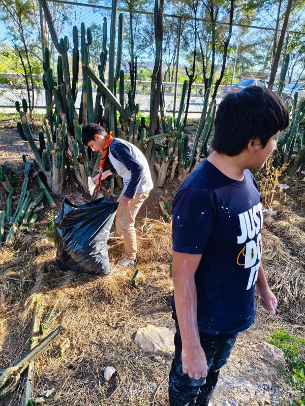 Con la unidad "John Powell" de La Salle nos con semanas de antelación nos organizamos para realizar una liempieza. Organizandonos previamente para conseguir los utensilios de limpieza, como guantes, bolsas negras y demás. El día de limpieza aprovechamos gran parte de la jornada para poder levantar basuras , plásticos y residuos que estaban esparcido por los cactus, arbustos y árboles.