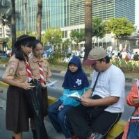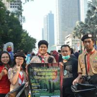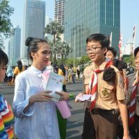 This project was carried out to coincide with car free day (CFD) activities in the Thamrin - HI area. Project initiation begins with a briefing at the base regarding the things that must be done. and continued with a long march towards the area. Throughout the trip, we carried banners containing the points on the 3Rs. Apart from that, each of us carries out verbal outreach to the community, accompanied by the provision of brochures explaining each aspect of 3R and its urgency.