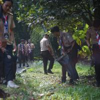 This project was carried out by involving 71 scouts and integrated into Subcamp 2 of Pertikawan Nasional 2024. The activity began with cleaning the area around the PPGLHK guesthouse. Next, cleaning was carried out along the road to the planting activity location. Finally, planting activities were carried out together with seeds provided by the committee.