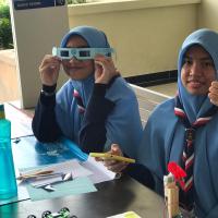 The Scouts Go Solar station was held at Labuan International School. I decided to conduct an activity that did not take too much time and was suitable for all ages, so I did a Scouts Go Solar exhibition and a hands-on activity which was to make D-I-Y Sunglasses. I took the initiative to collaborate with local companies that would be willing to supply tinted films for the sunglasses and we were able to collect quite a large amount. We used the films to make the sunglasses, and everyone had fun.