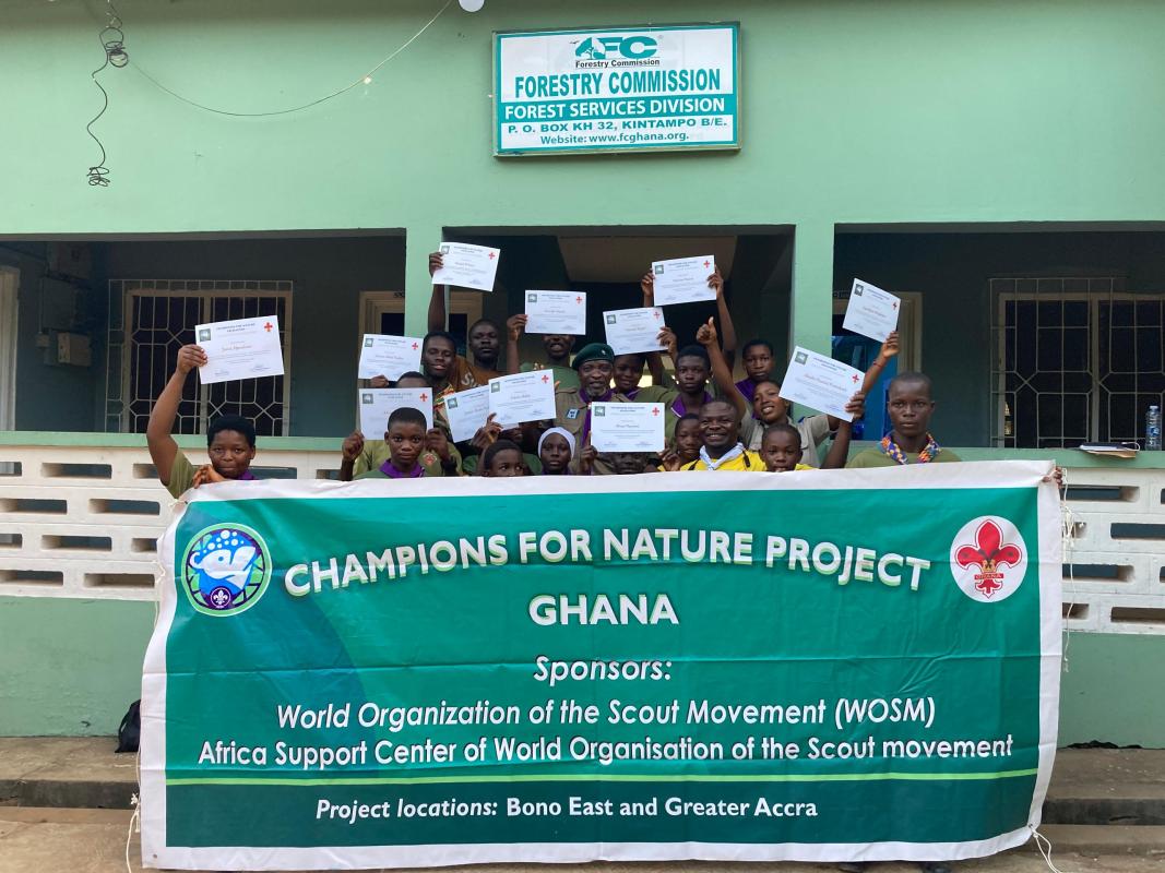 The project was carried out through training and hands-on farming. Scouts planted on 1.5 acres and tended maize, groundnuts, planted 250 mango tree, 150 cashew nuts and 1200 ornamental trees monitored growth, and managed challenges like irregular rainfall. Community leaders and the Forestry Commission of Kintampo provided guidance and support. Awards were given to Scouts who completed the challenge, and a citation was presented to the Forestry Commission for their collaboration.