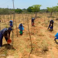 There are about 2000 plants here and the summer is hot and the plants are dry due to lack of water. Today, with the cooperation of Rover Ranger, water was taken from buckets and the plants were watered.