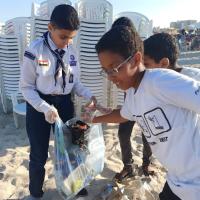 اجتمعنا نحن القادة مع الكشافين لشرح اضرار البلاستيك علي المخلوقات البحرية و المخلوقات جميعا فقررنا ان نقوم بعمل برامج توعوية لمرتادي الشواطئ و نقوم بجمع النفايات و فصلها عن بعضها البعض وقررنا ان يكون برنامجنا في نهاية الاسبوع اثناء العطلة وقررنا ان نشارك بعدد 50 كشاف وذلك لكثرة المستفدين و المتواجدون علي الشواطئ و قمن ا باحضار القفازات و الاكياس المستخدمة في عملية جمع البلاستيك من الشواطئ التي تضر المخلوقات البحرية من الشواطئ و البحر