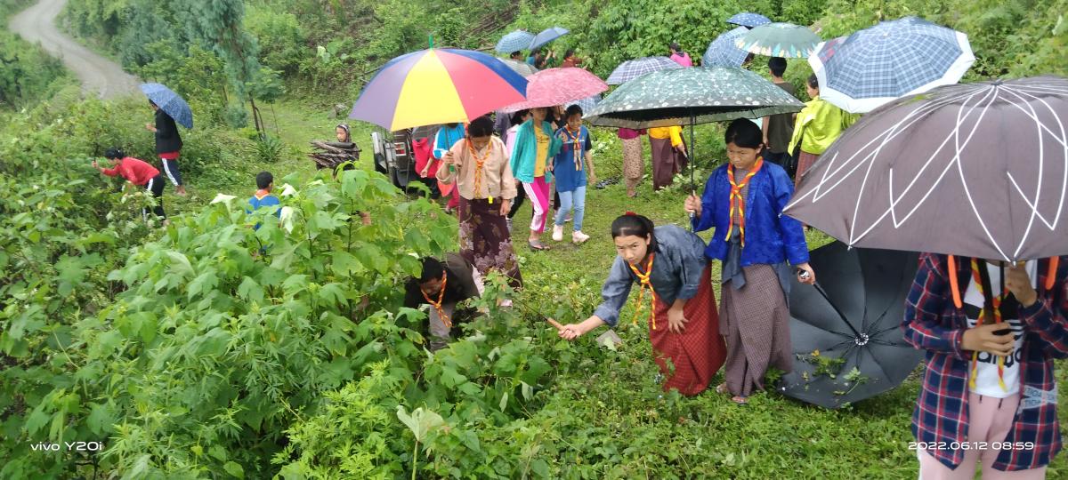 Nazhoen Scouts of Martshala Central School is always happy to render of helping hand where ever and whenever needed. There for, scouts are ready for any events to be held and we have even render the series of community services in the nearby places in the past years. On 12th June 2022, the leader of the School Scout Association along with the few teachers had joined the group for volunteer service to clear the bushes around the Throema Lhakhang of Martshala Gewog.