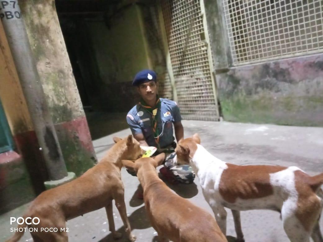 On the occasion of 73rd Foundation Day of Bharat Scouts & Guides our every Scouts & Guides of Pushkar lal kedia Scouts & Guides group have fed house food to the street dogs..