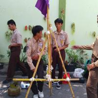 Kegiatan dimulai dari menyiapkan bahan pionering yaitu tongkat dan tali. Peserta dilatih menggunakan teknik demonstrasi pembuatan kaki tiga sebagai dasar pembuatan gapura tanpa pasak. Melatih membuat ikatan palang dan ikatan silang.