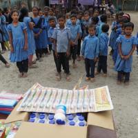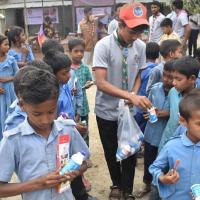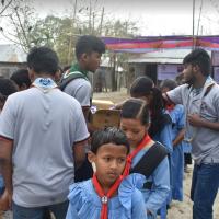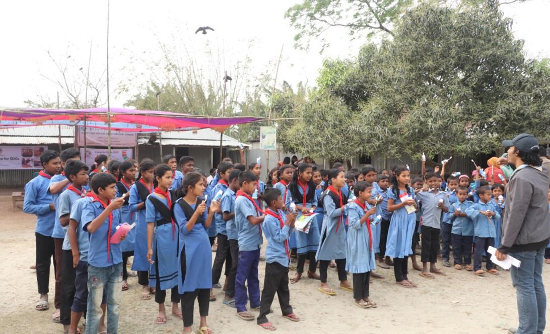 A few Rovers including the Rover Scout Leader went to work at Lalmonirhat Char. In this project, we teach children about teeth and how to care for them. They are also informed about the problems they face if they do not take care of their teeth regularly.