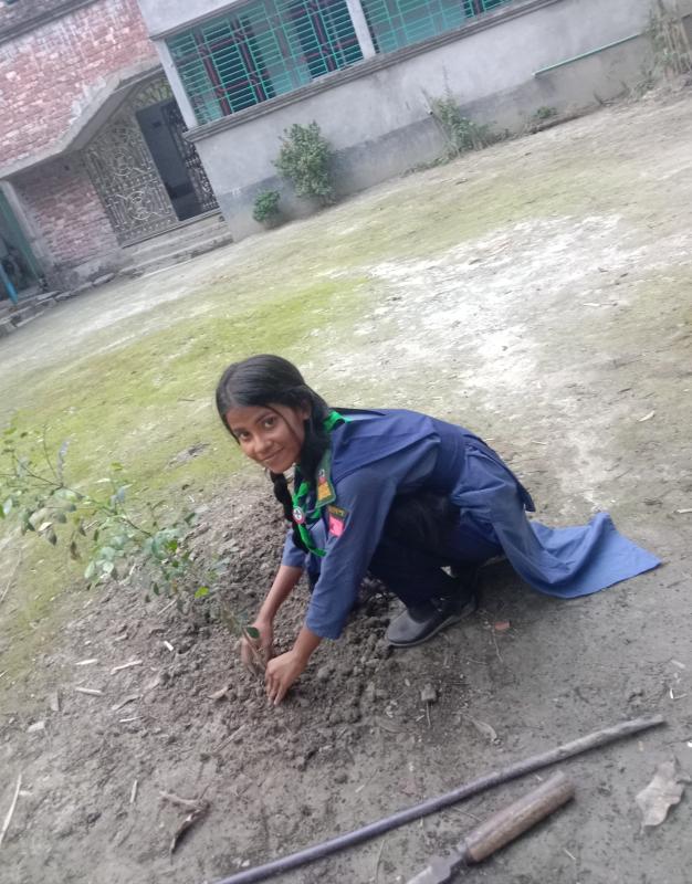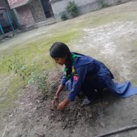 "To save the environment and nature we finally execute our eagerly cherished plan and planted a few trees. After planting trees we tried to spread good and proper idea about afforestation among the people nearby"