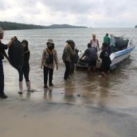 We formed a working group, had preparatory meetings, and debriefed participants within the SWA Discovery framework. This progress takes almost 3 months. The initiatives kicked off by going to the Ujung Kulon National Park on February 22nd. We sailed to Cidaon and cleaned up the beach to Cikuya, then sailed to Peucang Island to clean up the forest to the Karang Copong. Lastly, in Taman Jaya village we're collecting data from coastal communities on the peninsula to carry out sustainable programs.
