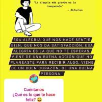 - Se subió una historia sobre el día de la alegría y les preguntamos a los que nos siguen en las cuentas ¿Qué es lo que les hace feliz?