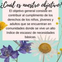 Contribuir al cuplimiento de los derechos de niños, jóvenes y adultos que se encuentran en comunidades donde se vive con un alto índice de escasez de necesidades básicas.