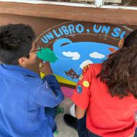 También pintamos 7 murales que fueron portadas de libros donados para incentivar la lectura.