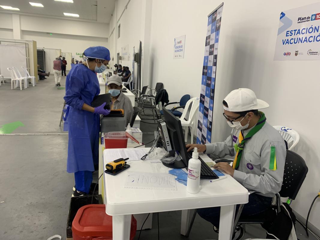 El Ministerio de Salud Pública del Ecuador mediante un acuerdo con la Asociación Scout logra implementar el apoyo de varios jóvenes en el proceso de vacunación 9/100. En mis días de acción de servicio he apoyado en digitación y logística, asi como tambien orientando e informando a las personas que acuden al centro de vacunacion.