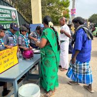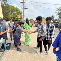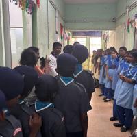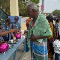 The project was executed by organizing a series of meaningful activities involving students. They exchanged friendship bands, created a rangoli on the 17 Sustainable Development Goals, and performed a skit on stampede awareness. Students also cleaned the Murugan temple premises, distributed rice bags and gloves to sanitation workers, and served lemon juice to the public, promoting service and social responsibility.