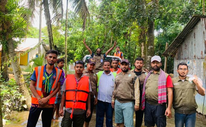 বন‍্যা কবলিত মানুষের জন‍্য ত্রাণ সামগ্রী বিতরণ