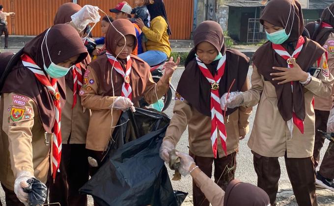 Pramuka Beraksi Bersih Sampah Plastik