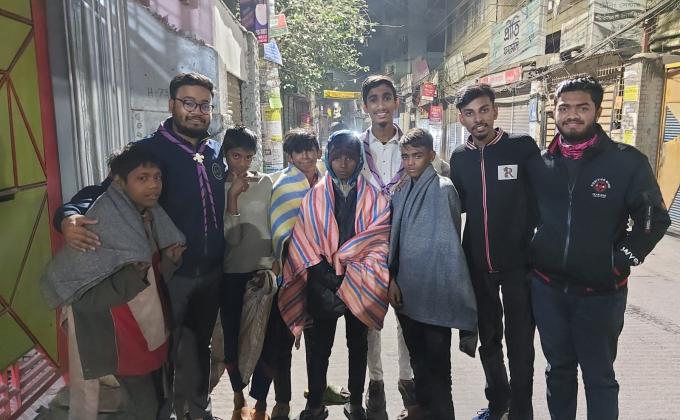 Distribution of winter blankets among poor people.
