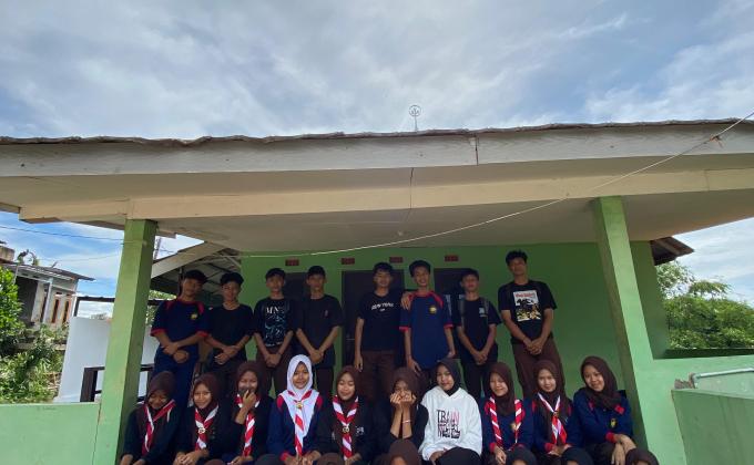 ANGGOTA PRAMUKA MEMBERSIHKAN LINGKUNGAN SEKOLAH